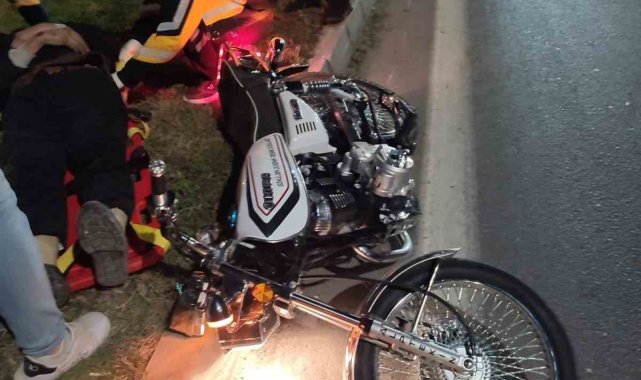 Kaldırıma çarpıp devrilen motosiklette 2 kişi yaralandı