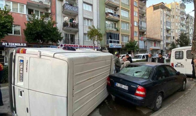 Aydın'ın Efeler ilçesinde kaldırıma çarparak takla atan ve ardından park halindeki bir araca çarparak durabilen ticari aracın sürücüsü yaralandı.