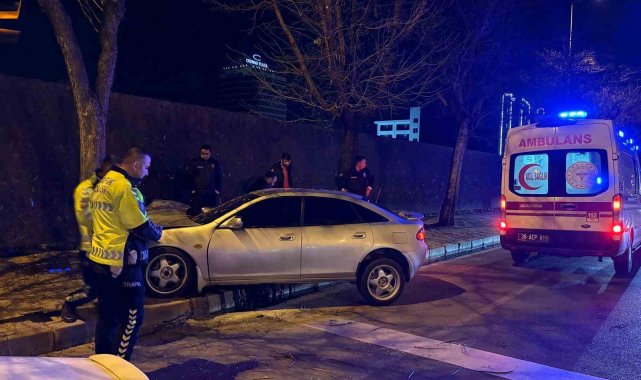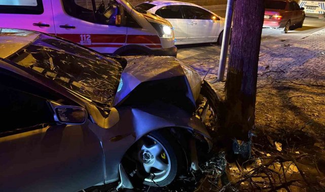 Kaldırıma çıkan otomobil ağaca çarptı: 2 yaralı