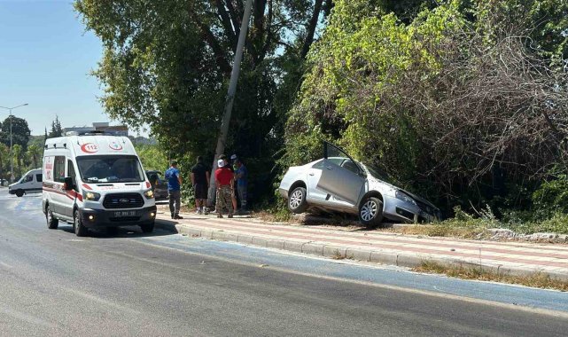 Antalya'nın Manavgat ilçesinde meydana gelen trafik kazasında, sürücüsünün direksiyon hakimiyetini kaybettiği otomobil kaldırıma çıkarak bahçeye girmekten son anda kurtuldu.