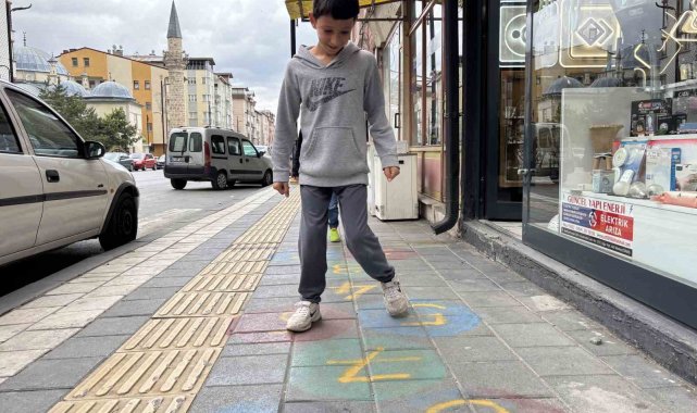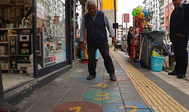 Kaldırıma seksek çizdi, yoldan geçenleri çocukluk hatıralarına götürdü