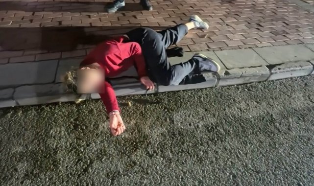 Kaldırıma yatıp çığlık attı, polisi görünce kaçmak istedi