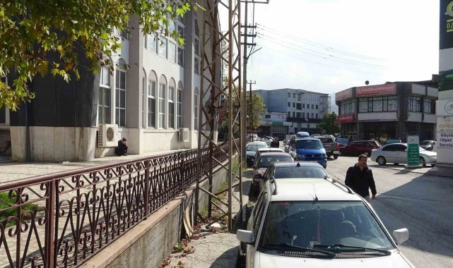 Kaldırımdaki direklerin yanı sıra hatalı araç parkları da yayaları mecburen karayoluna yönlendiriyor.