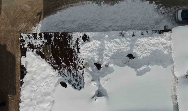 Kalınlığı 2 metreyi aşan kar ilçede hayatı felç etti