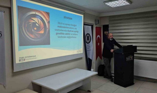 NAFOD ve Aydın Fotoğraf Sanatı Derneği (AYFOD) işbirliğinde Nazilli'deki dernek hizmet binasında düzenlenen etkinliğe çok sayıda fotoğraf tutkunu katıldı. NAFOD Yönetim Kurulu Üyesi, Fotoğraf Eğitmeni Kamil Okyay, eğitim seminerine katılan üyeler başta olmak üzere öğrenci ve diğer fotoğraf meraklılarına mobil fotoğrafçılığın temellerini anlattı. Mobil fotoğrafçılığın temelleri, renk uyumu ve kontrast, mobil fotoğrafçılıkta bakış ve hareket yönü, mobil fotoğrafçılıkta çizgiler - çerçeveler, mobil fotoğrafçılıkta kompozisyon, uygulama önerileri, ekipman ve aksesuarlar ile mobil fotoğraf uygulamalarını anlattı. 30 gün sürecek proje içerisinde teorik uygulamanın ardından saha çalışması yapılarak, cep telefonu kameraları ile çekilen fotoğrafların değerlendirmeye alınacağı belirtildi. Okyay sunumunda, cep telefonlarının işleyiş açısından fotoğraf makinelerine pek çok konuda benzese de dikkat edilmesi gereken farklılıklar olduğunun önemle altını çizerek, "Tarihteki ilk mobil fotoğraf 1997 yılında Philippe Kahn tarafından çekilmiştir. Mobil fotoğrafçılığı gelişmesi ve yayılması ancak 2002 yıllarında cep telefonlarının yaygınlaşması ile mümkün olmuştur. Mobil fotoğrafçılıkta fark oluşturan en önemli unsurlardan biri, kameranın kalbi sayılan görüntü sensörü ve onun sihirli rakamları olan boyutu ve çözünürlüğüdür. Işığı algılayan ve onu dijital verilere dönüştüren bu minik parça, fotoğrafın kalitesini doğrudan etkiler. Sensör boyutu ne kadar büyükse, o kadar fazla ışık toplayabilir. Profesyonel fotoğraf makinelerinde bulunan tam kare (Full Frame) sensörler, 36x24 mm gibi büyük boyutlara sahiptir. Oysa mobil telefonlardaki sensörler çok daha küçüktür" dedi.