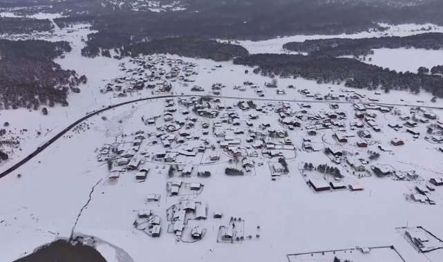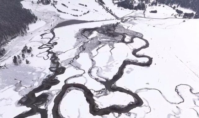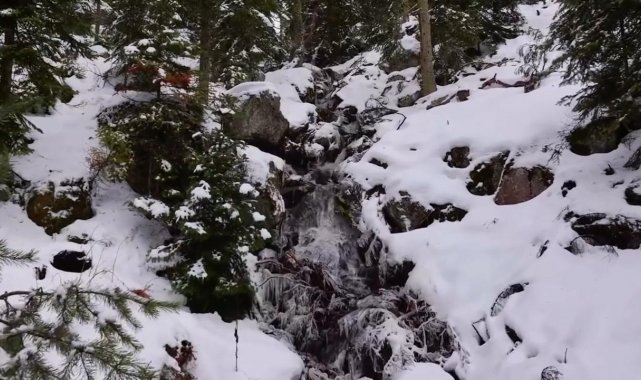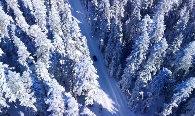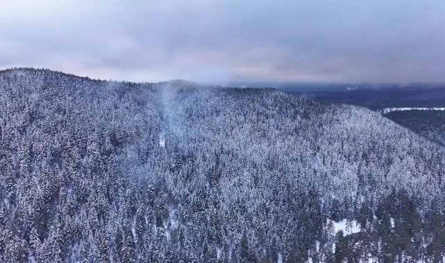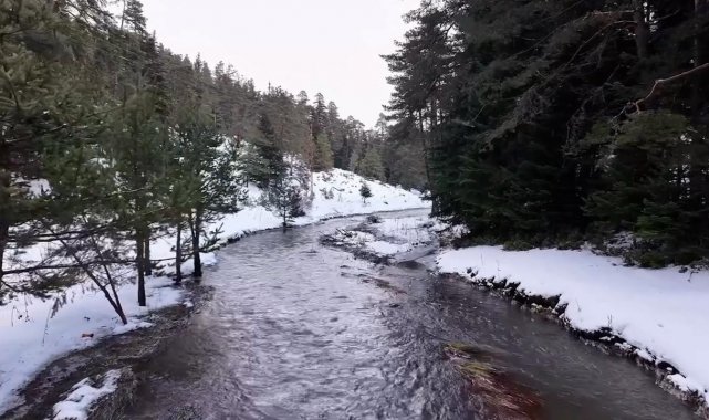 Bolu'da etkili olan kar yağışı, Aladağ bölgesindeki çam ormanlarında kartpostallık görüntüler oluşturdu.