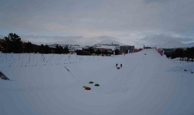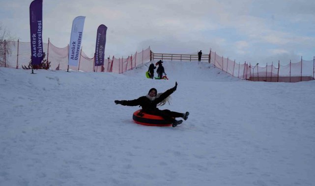 Dünyanın ve Türkiye'nin en önemli kayak pistlerini bünyesinde bulunduran Palandöken Kayak Merkezi yoğun ilgi devam ederken, Atatürk Üniversitesi yönetimi kampüs içinde de kayak ve kızak keyfi yaşamak isteyen öğrenciler için bir pist yaptı.