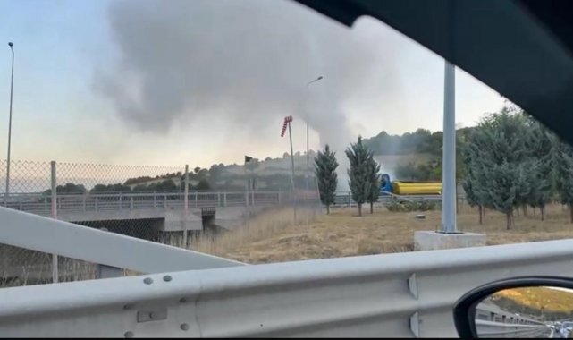 Kuzey Marmara Otoyolu Körfez geçişinde kamyon alev aldı. Trafikte uzun kuyruklar oluştu.
