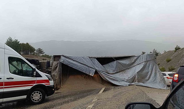 Kahramanmaraş'ta kamyonun devrilmesi sonucu sürücü yaralandı.