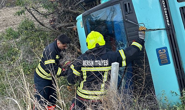Mersin'in Tarsus ilçesinde kamyon devrildi, sürücü yaralandı.