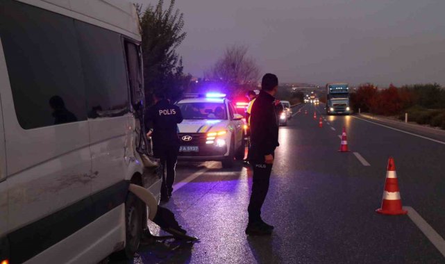 Denizli'de işçi almak için çevreyolu üzerinde emniyet şeridinde bekleyen servise, aynı yönden gelen kamyon çarptı. Kazada servis şoförünün babası hayatı hayatını kaybetti.