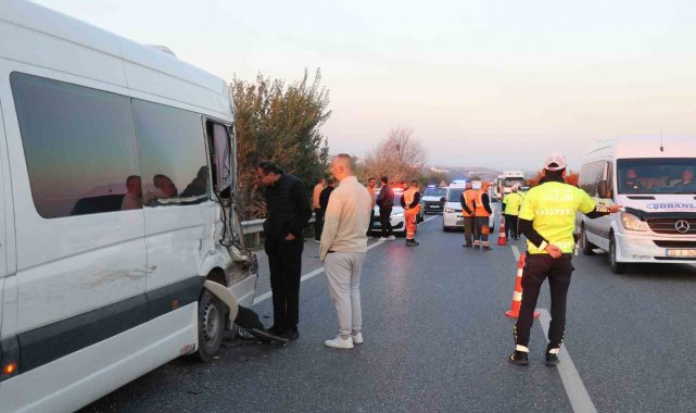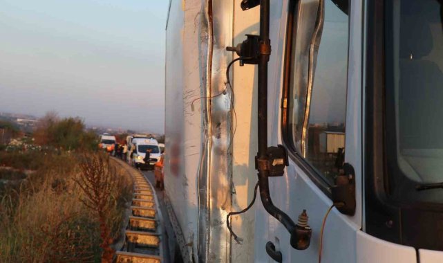 Kamyon emniyet şeridinde bekleyen işçi servisine çarptı: 1 ölü
