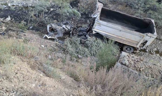 Erzurum'da şarampole devrilen kamyonun sürücüsü ağır yaralandı.