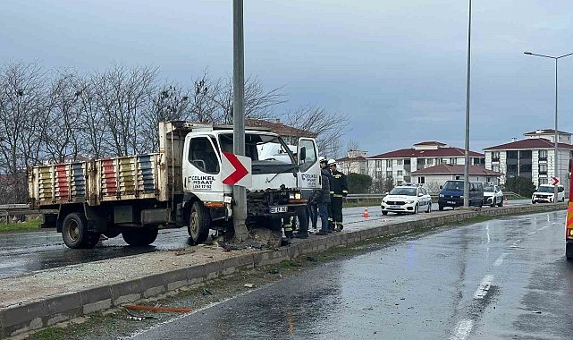 Tekirdağ'ın Muratlı ilçesinde sürücüsünün direksiyon hakimiyetini kaybetmesi sonucu yoldan çıkarak aydınlatma direğine çarpan kamyonetteki 2 kişi yaralandı.
