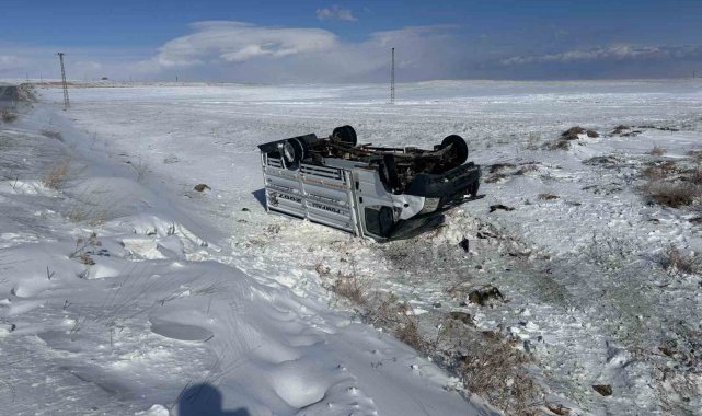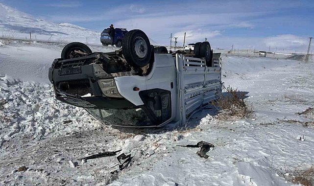 Bitlis'in Adilcevaz ilçesinde buzlanan yolda kontrolden çıkan kamyonet şarampole yuvarlandı.