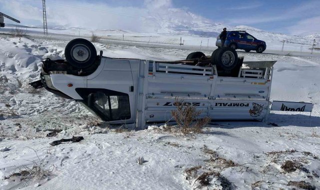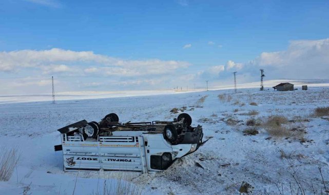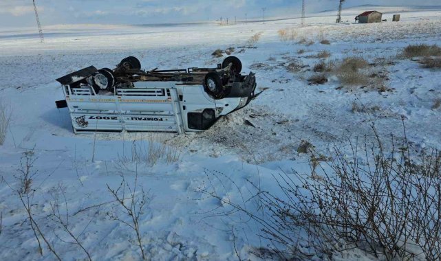 Kamyonet buzlanan yolda şarampole yuvarlandı