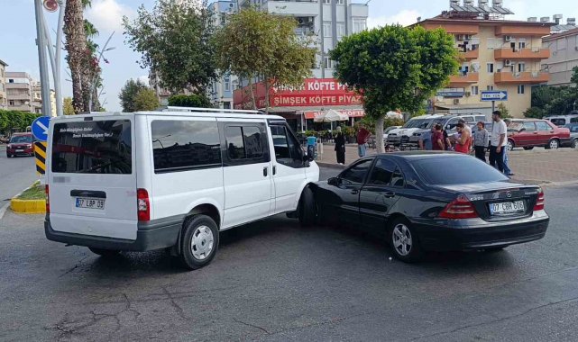 Antalya'nın Manavgat ilçesinde kavşak sisteminde kapalı kasa kamyonet ile otomobilin çarpışması sonucu meydana gelen kazada 1 kişi hafif yaralandı.