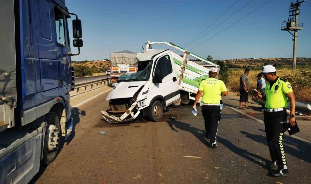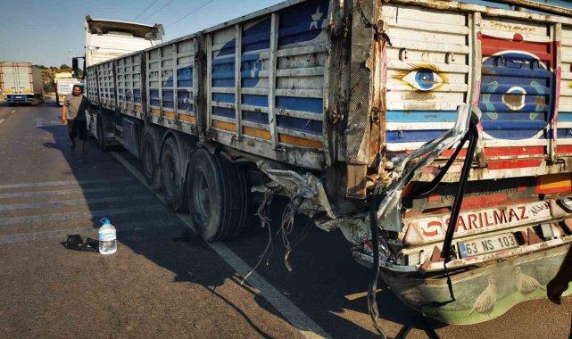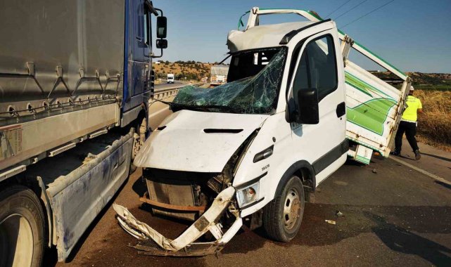 Osman Ü. (43) idaresindeki 16 YV 733 plakalı kamyonet aynı yönde seyreden Sait B. yönetimindeki 63 AGN 117 plakalı kamyona arkadan çarptı. Kamyonette bulunan sürücü Osman Ü. yaralı olarak Karacabey Devlet Hastanesi'ne sevk edildi.