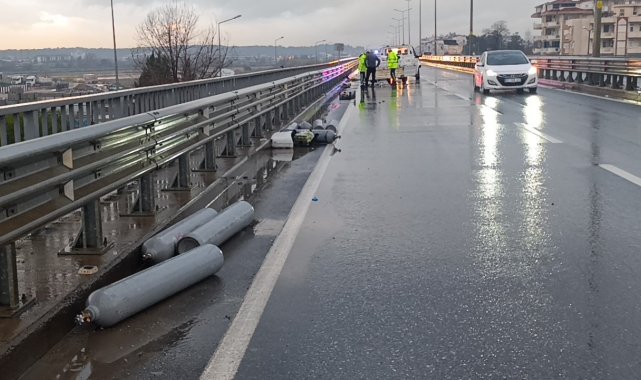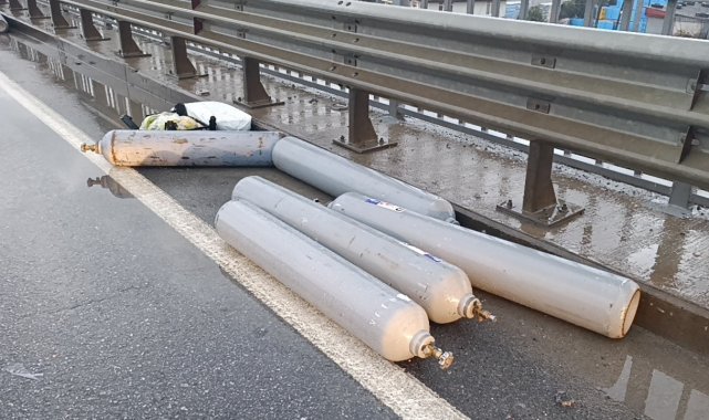 Kamyonet kazasında etilen tüpler yola saçıldı
