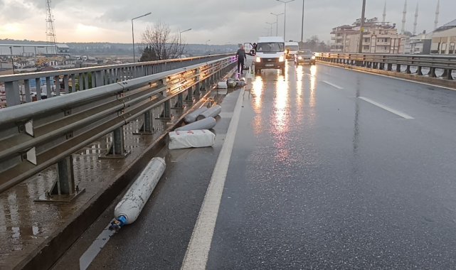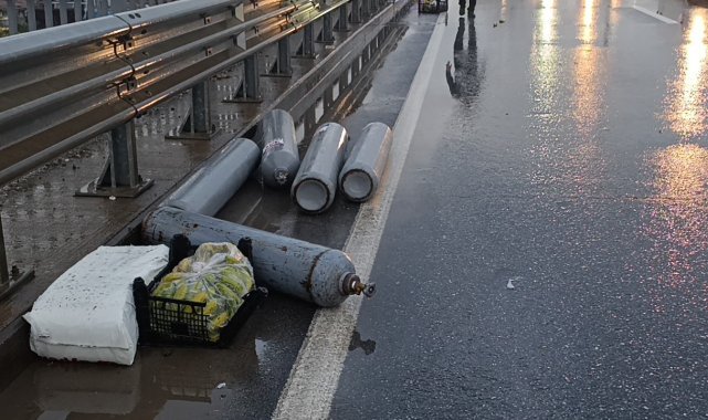 Kamyonette büyük çapta maddi hasar oluşurken, kamyonetin üzerinde bulunan poşet torbaları ve muz sarartma tesislerinde kullanılan çok sayıda etilen gazı tüpü köprülü kavşak üzerinde 100 metrelik alanda yola saçıldı.