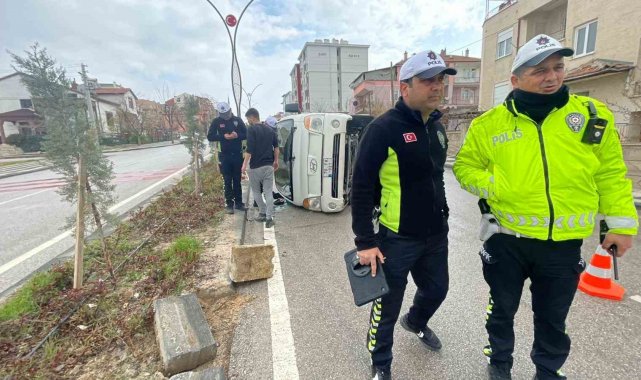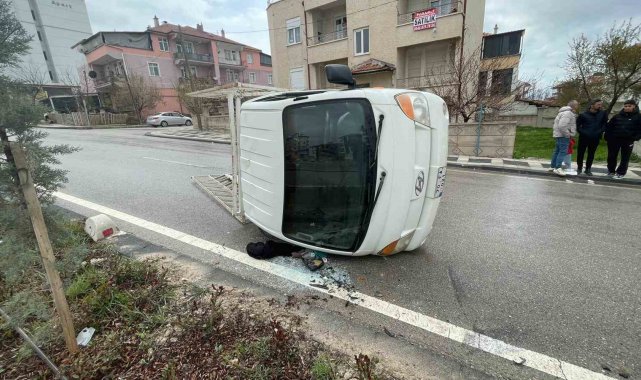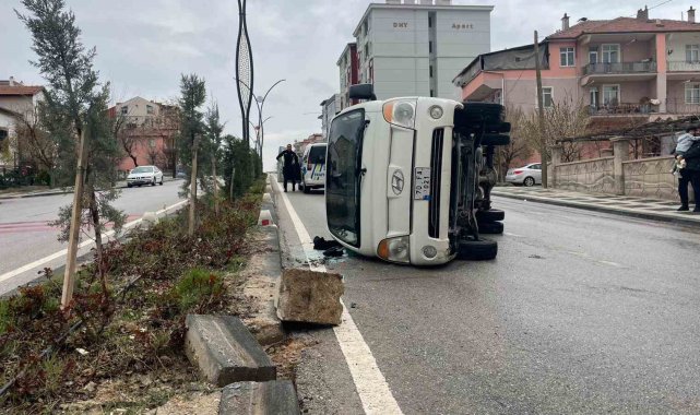 Kamyonet refüje çarparak devrildi: 2 yaralı