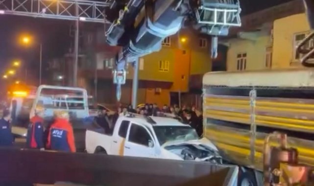 Kamyonete çarpan pikabın sürücüsü sıkıştığı yerden itfaiye ekiplerince çıkartıldı