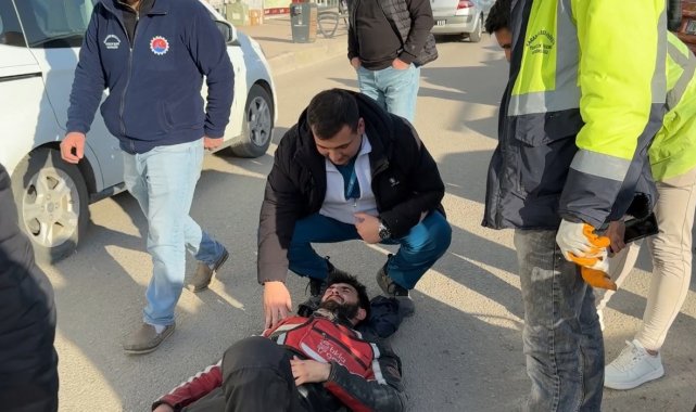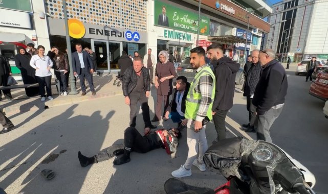 Kamyonetin açık kapısına çarpan motosiklet sürücüsü yaralandı