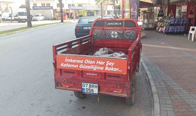 Antalya'da kamyonet ile 3 tekerlekli motosikletin çarpışması sonucu meydana gelen kazada üç tekerli motosikletinin altında kalan sürücüsü yaralandı. 'İmkansız olan her şey kafamın güzelliğine bakar' yazısı dikkati çeken motosiklet sürücüsünün ehliyeti olmadığı belirlenirken motosiklet sürücüsüne ve sahibine ayrı ayrı 18 bin 677'şer TL ceza uygulandı.