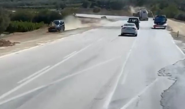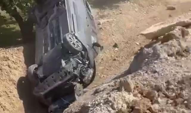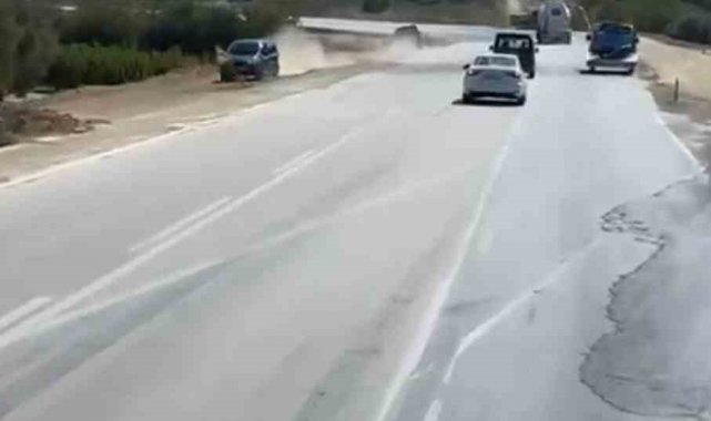 Bursa'nın İznik ilçesinde hafi ticari aracın tarlaya uçma anı arkadan gelen kamyonun kamerasına yansıdı. Takla atan kamyonetin sürücüsü hava yastıkları sayesinde kazayı yara almadan atlattı.