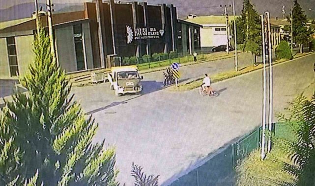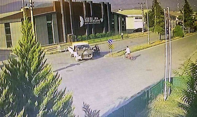 Kaza saat 08.00 sıralarında Mahmudiye Mahallesi Tandoğan Caddesi'nde meydana geldi. Tandoğan Caddesi'nde seyir halinde olan Cemal P. (27) yönetimindeki 16 BBT 011 plakalı motosiklet, aynı yöne giderken sola dönüş yapan Seyit E. (28) idaresindeki 16 AEK 316 plakalı kamyonete yandan çarptı. Çarpmanın etkisiyle devrilen motosikletten düşen sürücü yaralandı. Yaralı, kaza yerine sevk edilen ambulansla İnegöl Devlet Hastanesine kaldırıldı. Kaza anı bir iş yerinin güvenlik kamerasına saniye saniye yansıdı.