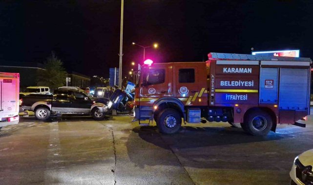 Kaza, akşam saat 22.50 sıralarında Yunuskent Mahallesi Zeytin Dalı Bulvarı üzerinde bulunan Valilik Kavşağı'nda meydana geldi. Edinilen bilgiye göre, H.K. (21) yönetimindeki 70 AF 952 plakalı Opel marka otomobil ile A.K. (27) idaresindeki 70 BG 783 plakalı Nissan marka kamyonet kavşakta çarpıştı. Kazada kamyonette bulunan A.S.A. (23) ile orta refüje devrilen otomobilin sürücüsü ile yanında bulunan Y.K. (21) araç içerisinde sıkışarak yaralandı. İhbar üzerine olay yerine sağlık, itfaiye ve polis ekipleri sevk edildi. Araç içerisinde sıkışan sürücü ile yolcu, itfaiye tarafından kurtarıldı. Yaralılar sağlık ekibinin olay yerinde yaptığı ilk müdahalenin ardından ambulanslarla Karaman Eğitim ve Araştırma Hastanesi'ne kaldırılarak tedavi altına alındı.