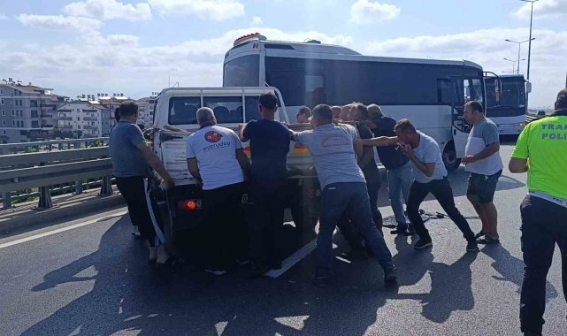 Diğer taraftan kazaya karışan tur midibüsü ve kamyonetin köprülü kavşağı tamamen kapatması nedeniyle köprülü kavşak kapandı. Yolun uzun süre kapanması nedeniyle uzun araç kuyruğu oluşurken, araçların kaldırılması ve yola dökülen malzemelerin toplanmasının ardından trafik akışı normale döndü.
