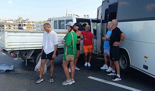 Antalya'nın Manavgat ilçesinde yola dökülen kapı-pencere gibi malzemelere çarpmamak için duran kamyonete tur midibüsü arkadan çarptı, kamyonet ise çarpmanın etkisiyle önündeki otomobile çarptı. Tur midibüsünde bulunan turistler, kaza minibüstü bulunan turistlerden yaralanan olmazken bir başka tur otobüsüyle yollarına devam ettiler.