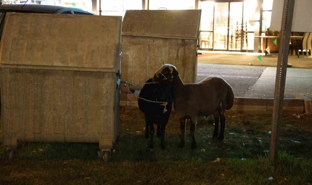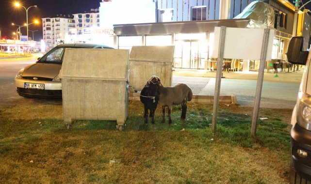 Aksaray'da kamyonetten karayoluna düşen ve kaza riski oluşturan koyunlar araç sürücüleri tarafından refüje alınırken, vatandaşların 112 Acil Çağrı Merkezine ihbarda bulunulmasına rağmen saatlerce hiçbir kurumun gelip sahip çıkmadığı koyunlar çöp konteynerine bağlanarak başıboş bırakıldı.