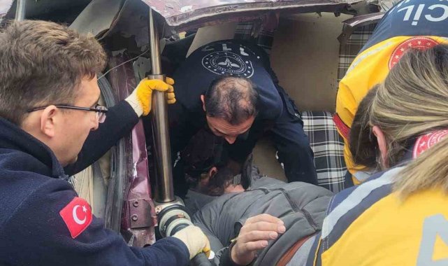 Kamyonla çarpışan otomobil hurdaya döndü: 1'i ağır 3 yaralı