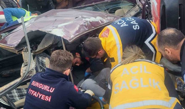 Kaza, Sungurlu-Çorum karayolunun 13. kilometresinde meydana geldi. Edinilen bilgiye göre, Ankara'dan Sungurlu istikametine seyir eden Baki Gınık idaresindeki 06 CHS 258 plakalı otomobile, Organize Sanayi Bölgesi'nde aynı istikamette seyir halinde olan Menderes Karaçil idaresindeki 19 SB 512 plakalı kamyon çarptı. Kazada sürücü Baki Gınık ile araçta yolcu olarak bulunan Yasin Karaoğlu ve Erol Öztemel ağır yaralandı. Kazayı gören sürücülerin ihbarı üzerine olay yerine itfaiye ve sağlık ekipleri sevk edildi. Kazada araç içerisinde sıkışan yaralılar, itfaiye ekiplerince çıkartılarak sağlık ekiplerine teslim edildi. Olay yerinde yapılan ilk müdahalenin ardından yaralılar Sungurlu Devlet Hastanesine kaldırılarak tedavi altına alındı.