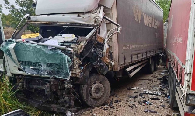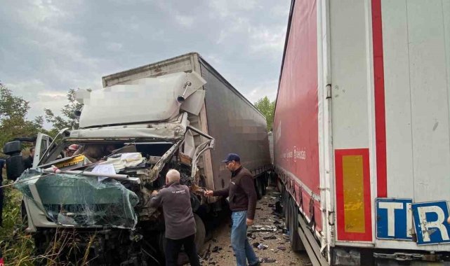 Bursa'nın İnegöl ilçesinde meydana gelen kazada 2 kamyon kafa kafaya çarpıştı; 1 sürücü yaralandı.