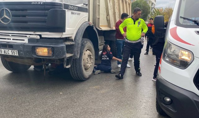 Kamyonun altında kalan motosikletli kurye ağır yaralandı