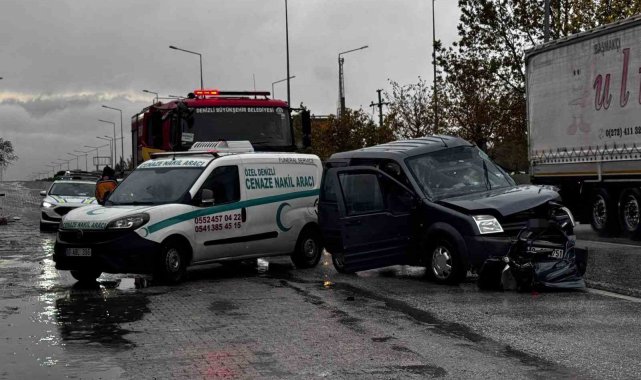 Denizli'de şerit değiştirmek isterken arkadan gelen kamyonun çarptığı hafif ticari araç yaklaşık 50 metre savruldu. Kamyonun da yoldan çıktığı kazada 1 kişi hayatını kaybederken, 2 kişi de yaralandı.