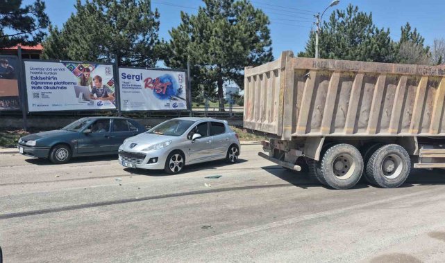 Eskişehir'de harfiyat kamyonunun önüne katarak sürüklediği araçta bulunan 3 şahıs şans eseri kazayı ufak sıyrıklarla atlattı.