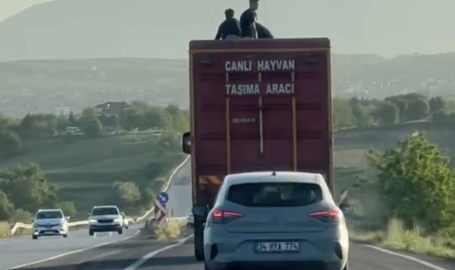 Olay, Elazığ-Bingöl karayolunda meydana geldi. Edinilen bilgiye göre, 3 kişi canlı hayvan taşıyan kamyonun üzerinde hiçbir güvenlik önlemi almadan yolculuk yaptı. Kendi canlarını hiçe sayan şahıslar, trafiği de tehlikeye attı. O anlar diğer araçlardaki vatandaşlar tarafından cep telefonu kamerası ile kaydedildi.