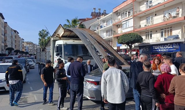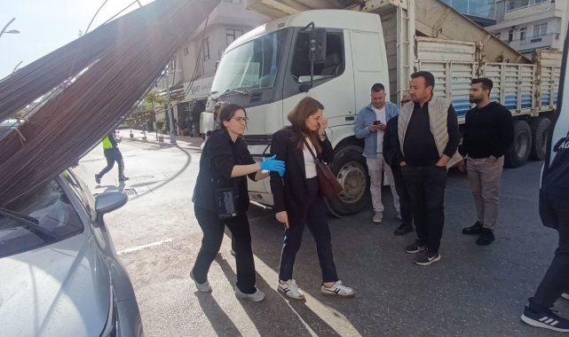 Antalya'nın Manavgat ilçesinde çekici üzerindeki inşaat demirlerinin otomobilin ön camından içeri girmesi sonucu meydana gelen kazada büyük şans eseri otomobilde bulunan 2 kişi hafif yaralandı. O anlar güvenlik kamerasına anbean yansıdı.