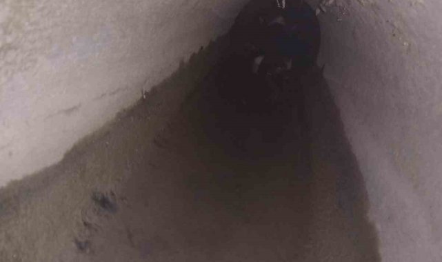 Kanalizasyon borusuna sıkışan yavru köpeği itfaiye kurtardı