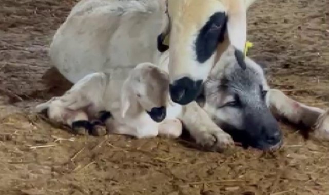 Sivas'ta kangal köpeği ile koyun ve kuzu arasında gözlemlenen duygusal bağ, izleyenleri duygulandırdı. Uzman kangal yetiştiricisi Hüseyin Yıldız ise sert yapısıyla bilinen kangalların koyunlara karşı şefkat dolu yaklaşımına vurgu yaparak, iki hayvan arasındaki dayanışmanın önemini anlattı.