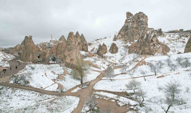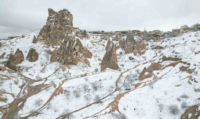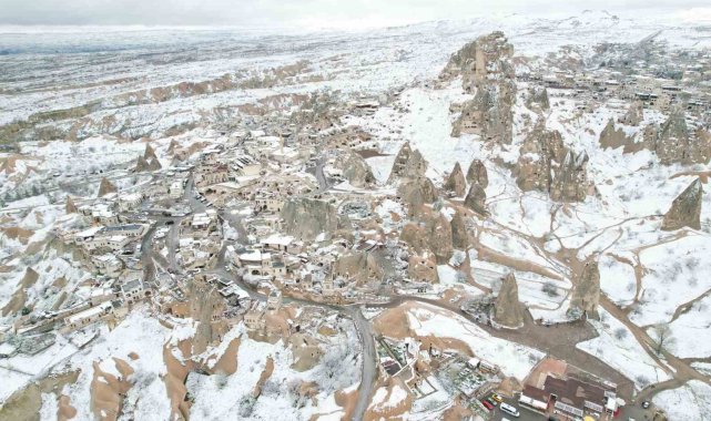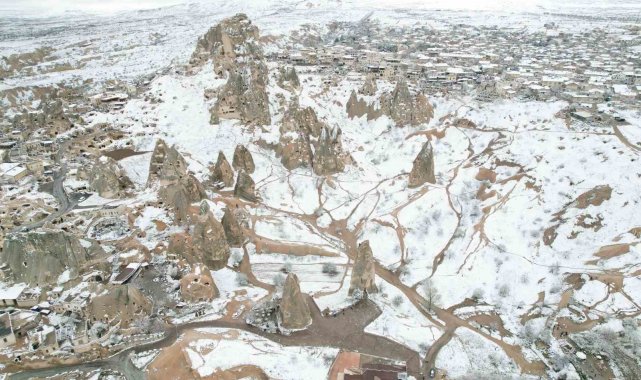 UNESCO Dünya Doğal ve Kültürel miras listesinde yer alan ve yılda yaklaşık 4 milyondan fazla yerli ve yabancı turist ağırlayan Kapadokya bölgesi gece saatlerinde başlayan kar yağışı ile birlikte beyaza büründü.