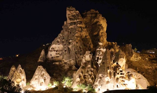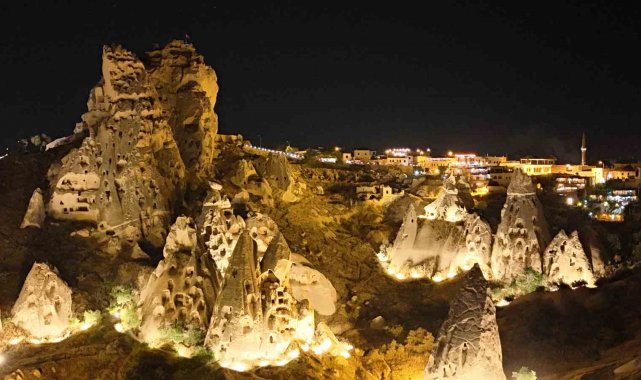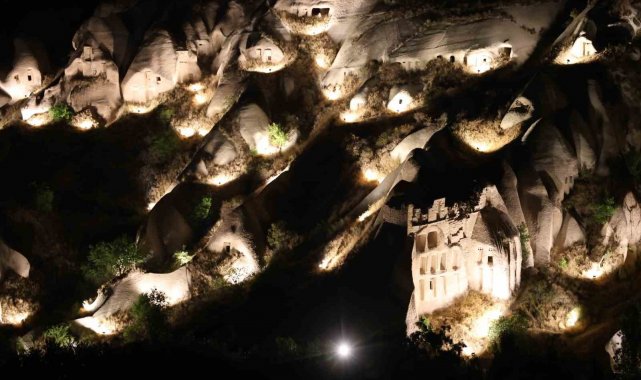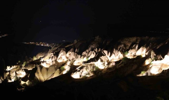 UNESCO Dünya Doğal ve Kültürel Miras Listesi'nde yer alan Kapadokya'da Kültür ve Turizm Bakanlığı tarafından hayata geçirilen gece aydınlatma projesiyle bölgenin büyüleyici vadileri geceleri de ziyaretçilerini ağırlıyor.