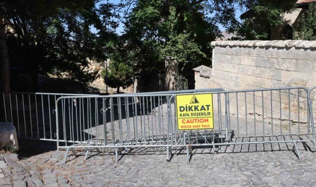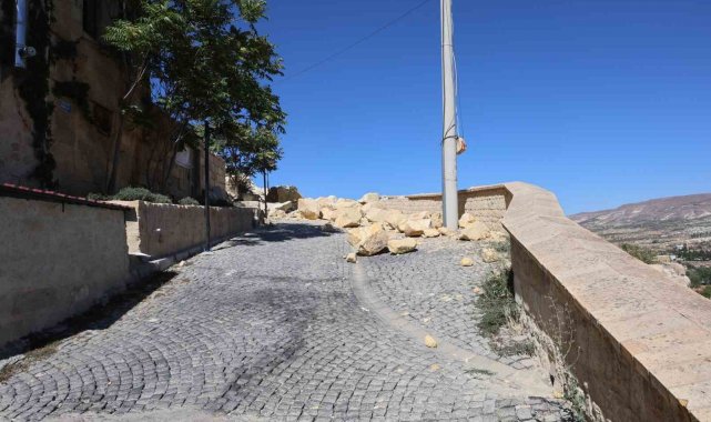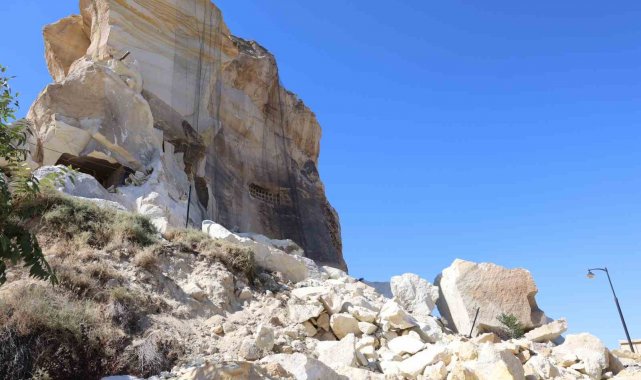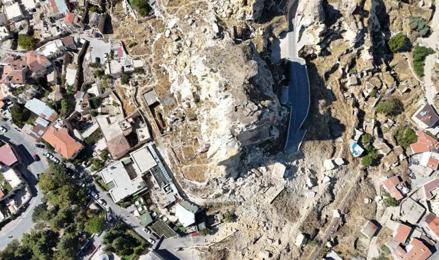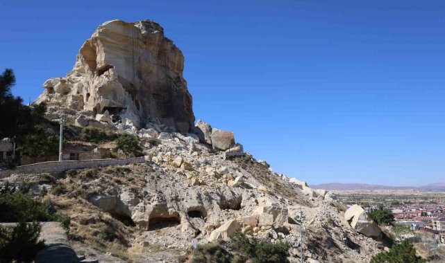 Kapadokya'da Kadıkalesi'nin bir bölümündeki kaya parçaları koptu