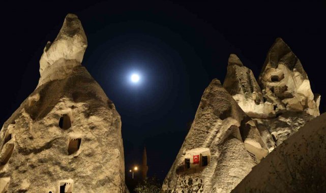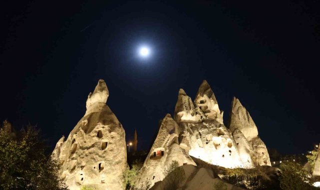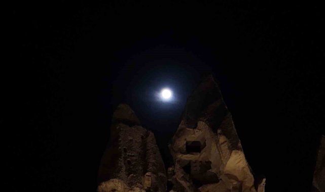 UNESCO Dünya Doğal ve Kültürel Mirası Listesi'nde yer alan ve her yıl milyonlarca turistin ziyaret ettiği Kapadokya'da "Kunduz Süper Ay"ı, peribacaları ile kartpostallık görüntüler ortaya çıkardı.