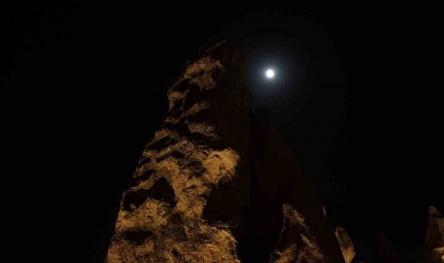 Bu gece gökyüzünde parlayan dolunay, 2025 yılının en büyük ve en parlak süper ayı olarak kayıtlara geçti. "Kunduz Süper Ay" olarak adlandırılan bu özel gök olayı, Ay'ın Dünya'ya en yakın konumuna ulaştığı dolunay evresinde gerçekleşti. Her yıl milyonlarca turistin ziyaret ettiği Kapadokya'da, peribacaları ile dolunayın oluşturduğu manzara kartpostallık görüntüler ortaya çıkardı.