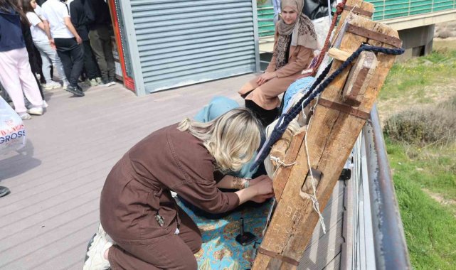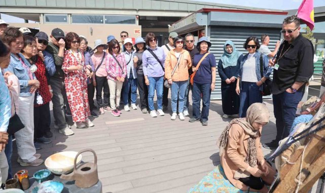 Kapadokya'da turistler halı dokuyup çanak yaptı